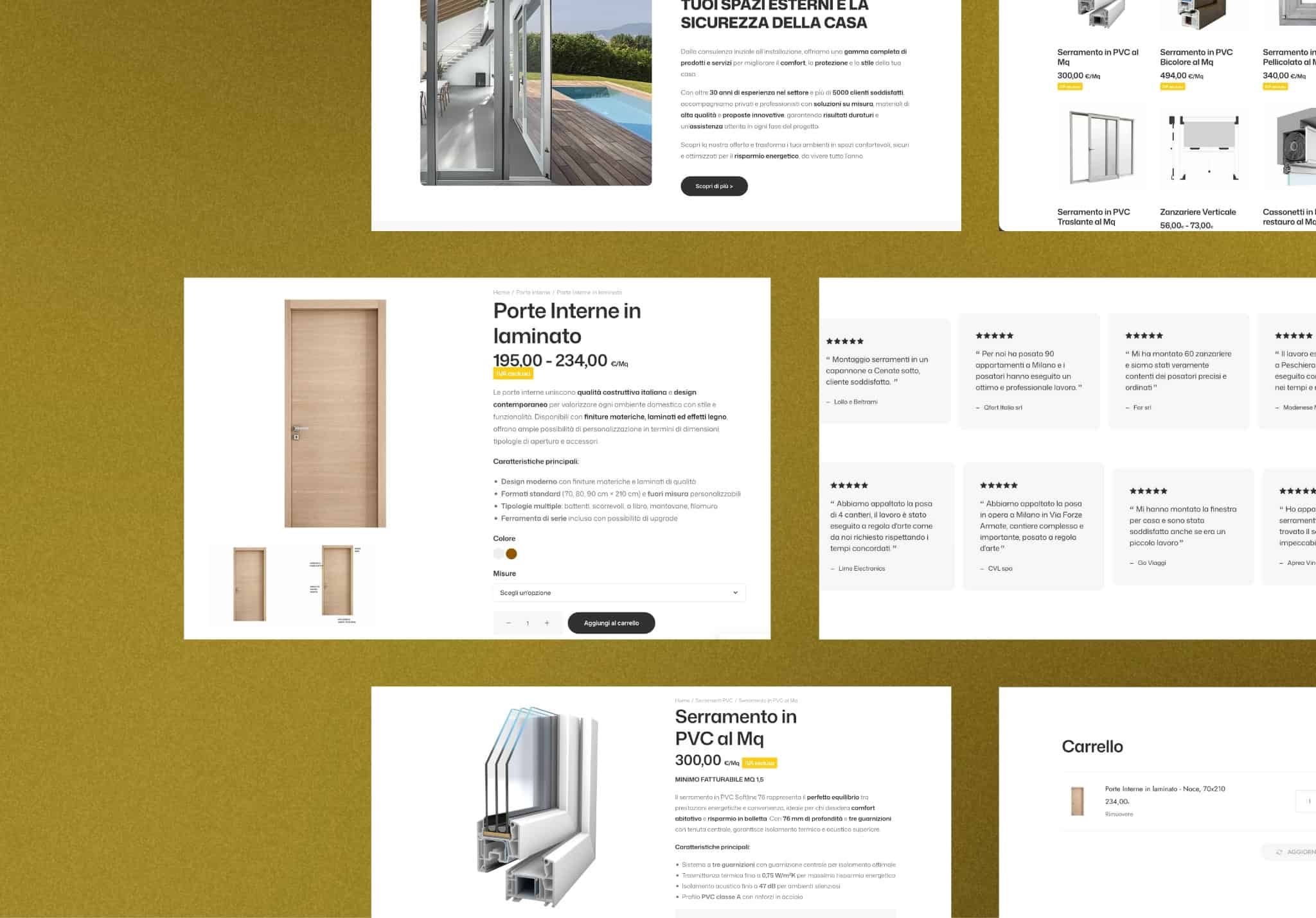 Il Serramento Italiano oggi ha uno spazio digitale completo e funzionale: un e-commerce che vende, un preventivatore che informa, e una comunicazione social che porta traffico qualificato. Il cliente può scoprire, scegliere e acquistare direttamente online, oppure richiedere un preventivo personalizzato. Tutto è pensato per convertire.