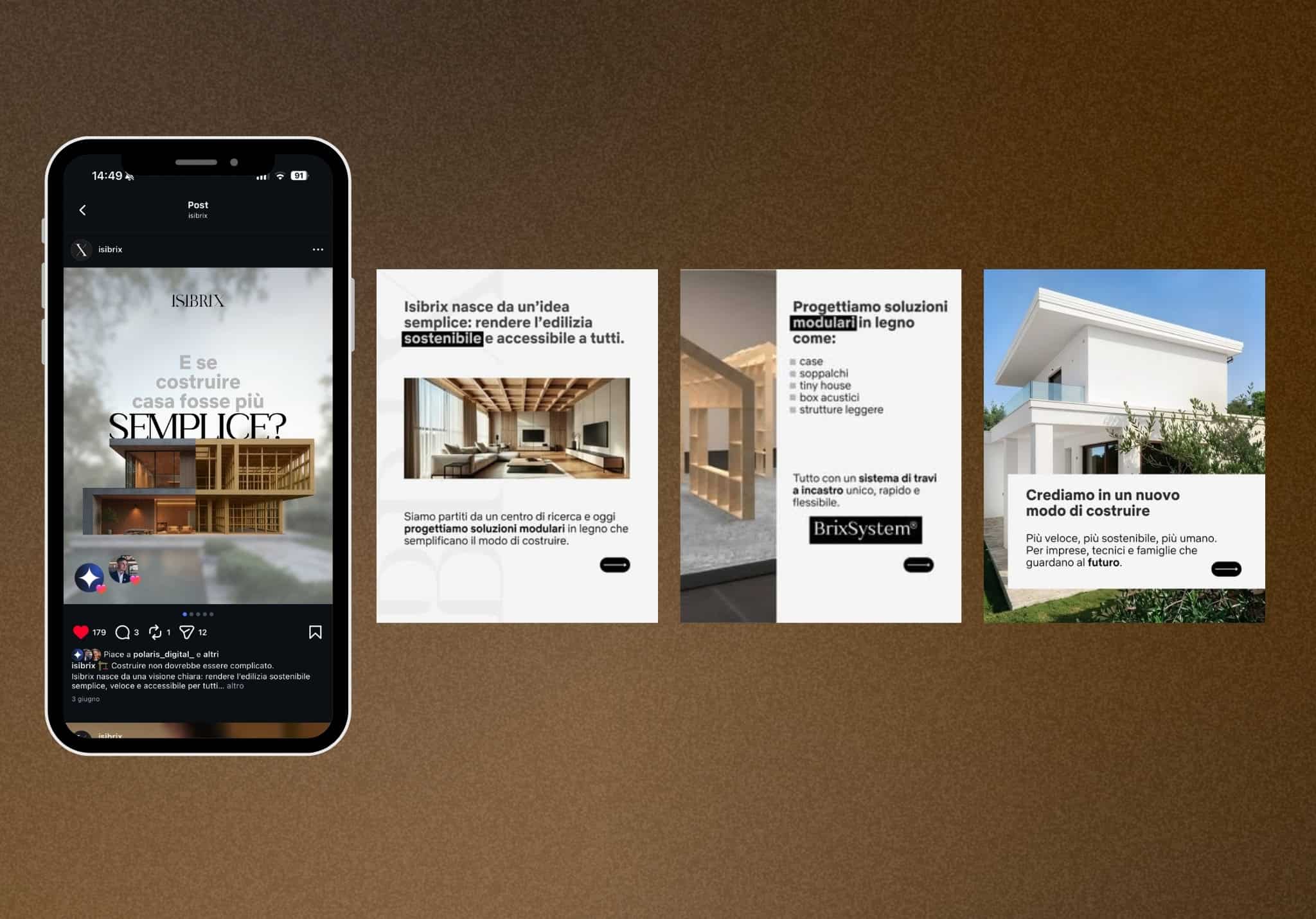 ISIBRIX oggi ha superato i 13.000 follower su Instagram e, in soli 6 mesi, ha generato oltre 500 richieste di contatto. La comunicazione funziona, le campagne convertono, il brand si è posizionato come punto di riferimento nel settore della bioedilizia modulare. Chi cerca un sistema innovativo per costruire casa, ora sa dove guardare.